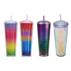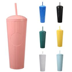 hese big 24-ounce capacity cups are made of durable double-wall insulated polyethylene to maintain the temperature of hot or cold drinks. Includes a lid and straw for sublime sipping. Select from more than 30 kaleidoscopic colors and types that look stylish and feel great in your hand.