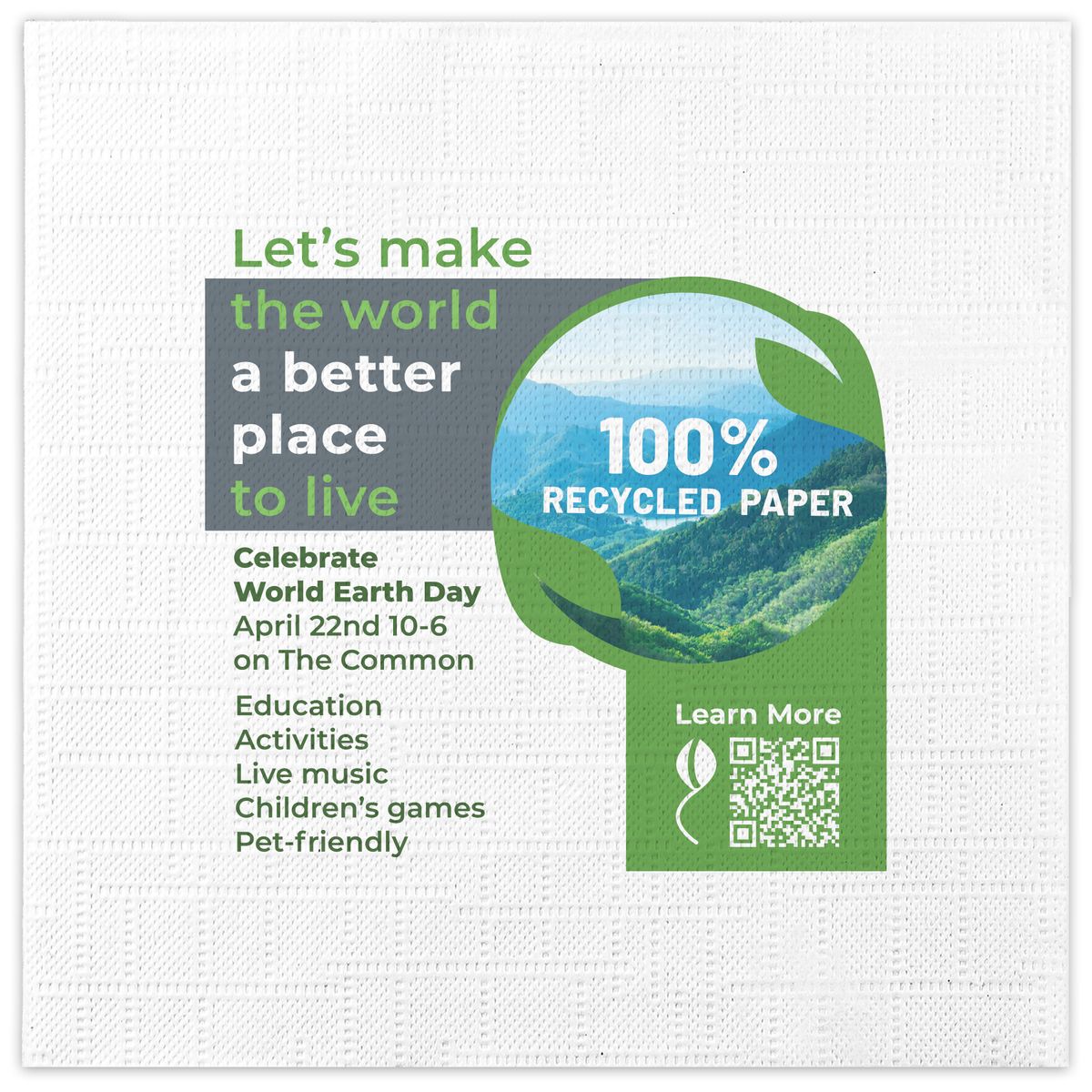 LOW QTY All-over embossed 100% recycled paper 3-ply custom cocktail napkins are full color digital printed 4.25" or full bleed (separate product) with eco-friendly water-based inks, food-safe with no solvents, or harsh chemicals. These sustainably produced beverage napkins are cost-effective and ideal for any venue where drinks and appetizers are served. They are sized for cocktails and beverages and replace an appetizer plate as our ink is safe for consumers and environment. Packs/50.